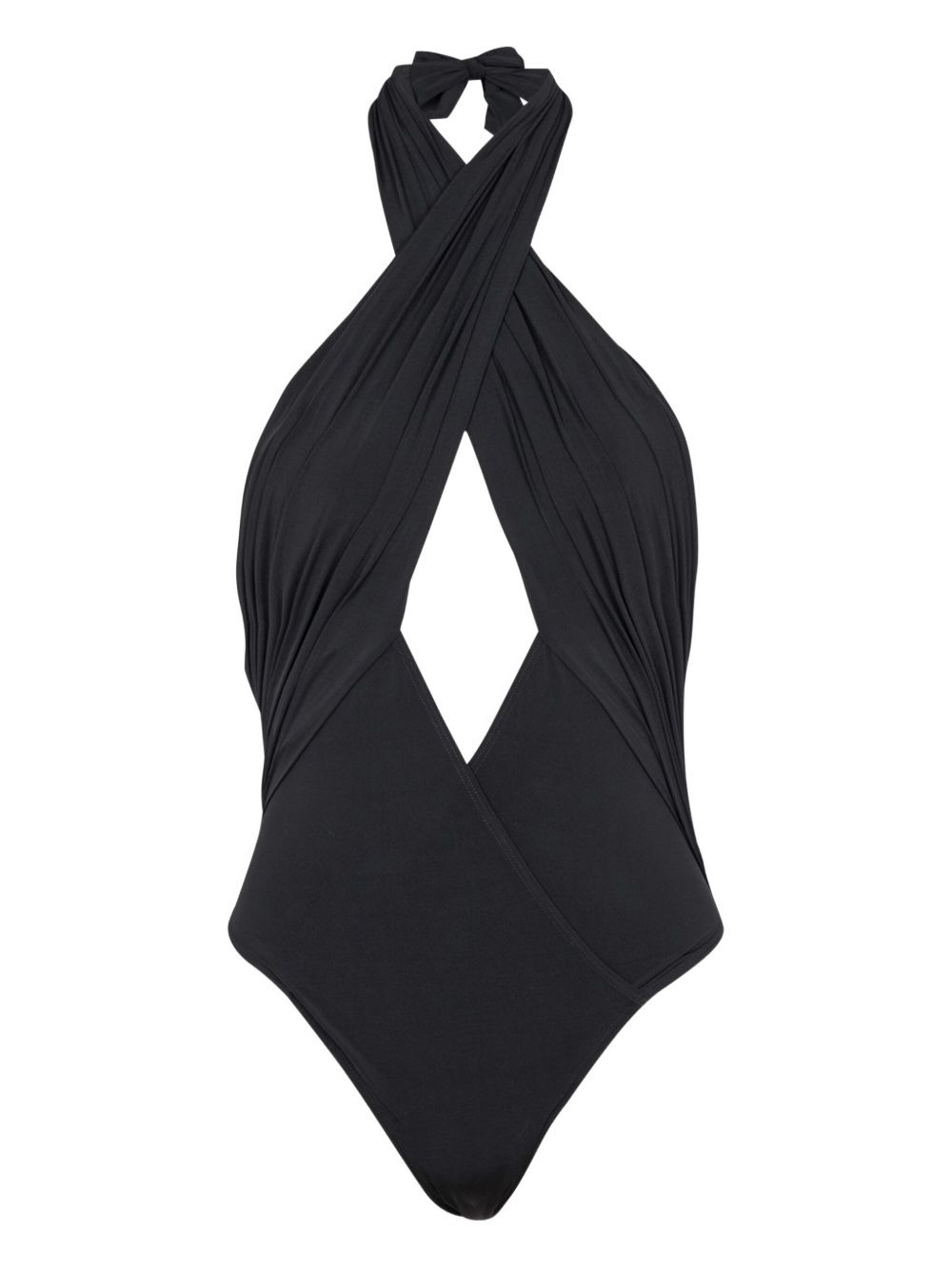 halterneck swimsuit Highlights - Black - Halterneck tie fastening - Cut-out detailing - Open back - Be mindful to try on swimwear over your own garments. Made in Italy Composition Polyamide 85%, Elastane 15% Washing instructions Specialist Cleaning