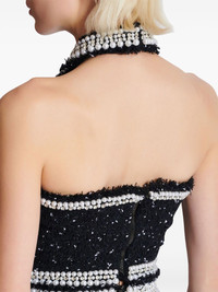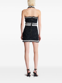 Embroidered polka-dot tweed halterneck top