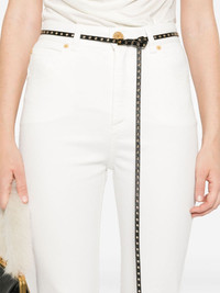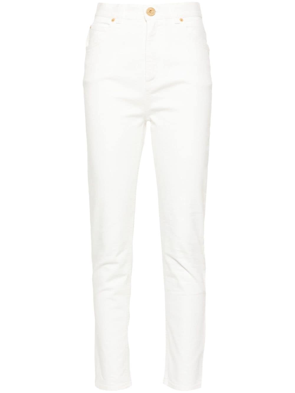 high-rise jeans Balmain demonstrates its propensity for classic wardrobe staples with these white skinny jeans. They’re made with a touch of stretch and designed to sit high on the waist. The gold-tone logo-embossed button is a signature finishing touch. Highlights - White - Cotton blend - Denim - High-rise - Belt loops - Classic five pockets - Rivet detailing - Cropped leg - Skinny cut - Concealed fly and button fastening Made in Italy Composition Outer: Cotton 98%, Elastane 2% Lining: Cotton 97%, Elastane 3% SIZE & FIT Model measurements Height 5 ft 10 in(1.77 m) Bust/Chest 33.85 in(86 cm) Hips 37 in(94 cm) Waist 26.37 in(67 cm) FittingInformation Designed for a skinny fit, these jeans offer a close fit throughout Constructed from stretch denim, this piece offers a stretch fit with durability This piece fits true to size – take your usual size