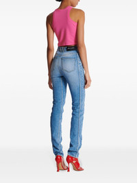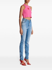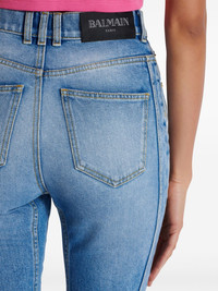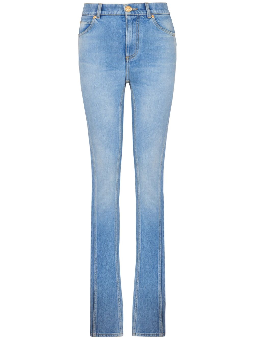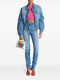 high-rise slim-cut jeans Highlights - Indigo blue - Stretch-cotton - Denim - Applique logo - High-rise - Belt loops - Concealed fly and button fastening - Classic five pockets - Slim cut Made in Italy Composition Cotton 98%, Elastane 2% Washing instructions Read Manufacturer Guidelines