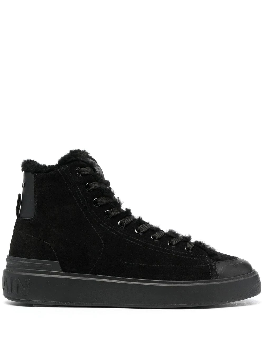 high-top suede sneakers black calf leather logo patch at the tongue embossed logo to the rear branded heel counter soft lining tonal toecap front lace-up fastening ankle-length flat rubber sole Made in Italy Composition Outer: Calf Leather 100% Lining: Lamb Skin 100% Sole: Rubber 100% SIZE & FIT Measurement HEEL 1.57 in(4 cm) HEIGHT 3.93 in(10 cm) Sole height 0.78 in(2 cm)