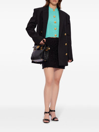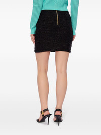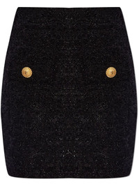 high-waisted boucle miniskirt Highlights - Black - Boucle construction - Melange effect - Embossed gold-tone buttons - High-waisted - Rear zip fastening - Pencil design - Thigh-length - Straight hem Made in France Composition Polyamide 100%