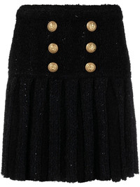 high-waisted button-detail skirt Balmain's opulent approach to tailoring is showcased on this SS23 collection skirt, which has a high-waisted silhouette and gold-tone button detailing. Highlights - Black - Cotton - High waist - Decorative button detailing Made in France Composition Hemp 32%, Viscose 30%, Polyamide 18%, Cotton 9%, Polyester 6%, Linen/Flax 5% SIZE & FIT Model measurements Height 5 ft 10 in(1.78 m) Bust/Chest 30.7 in(78 cm) Hips 34.64 in(88 cm) Waist 23.22 in(59 cm) FittingInformation This piece fits true to size. We recommend you get your regular size Designed to be fitted at the waist and hips, loose over the leg Made with a mid-weight fabric Washing instructions Dry Clean Only