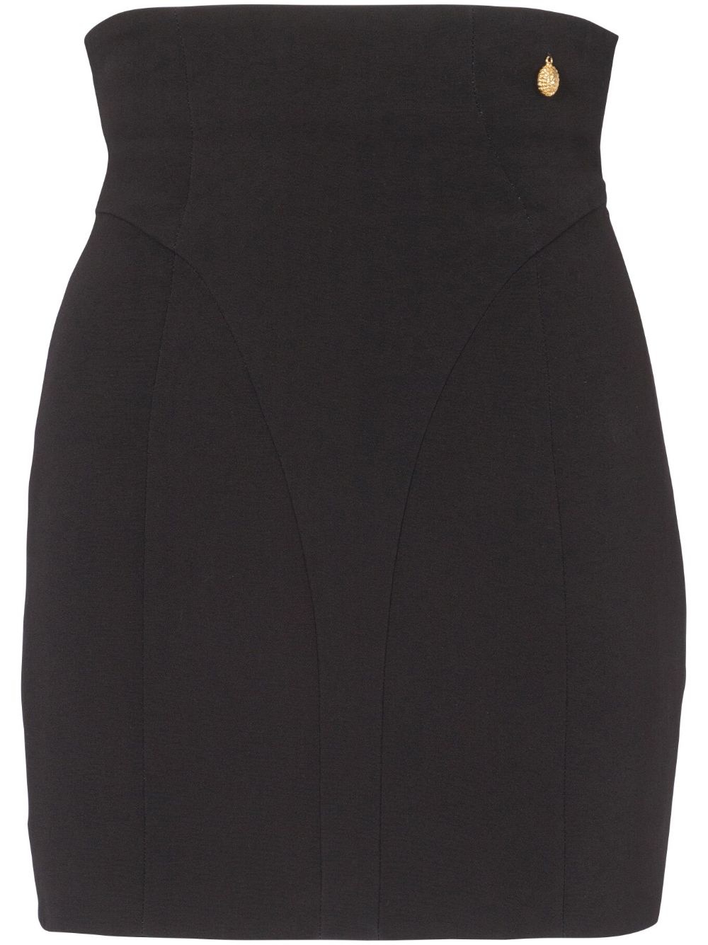 high-waisted crepe miniskirt Highlights - Black - Crepe texture - Gold-tone hardware - High-waisted - Fitted waistline - Thigh-length - Straight hem Imported Composition Viscose 100% Washing instructions Read Manufacturer Guidelines