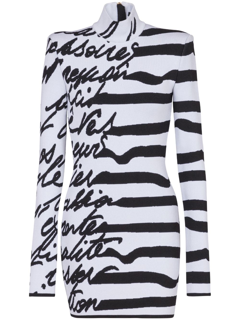 intarsia-knit logo mini dress Highlights - White/black - Knitted construction - Intarsia-knit logo - Stripe detailing - Rear zip fastening - High neck - Long sleeves - Straight hem - Thigh-length Made In France Composition Viscose 85%, Polyester 15% Washing instructions Read Manufacturer Guidelines