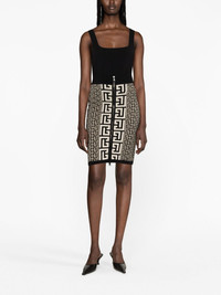 intarsia-knit midi skirt Balmain's 'PB' monogram was first introduced in the '70s and nods to the initials of founder Pierre Balmain. It’s intarsia-knit on this midi skirt in a muted black and beige palette. Highlights - Black/beige - Wool blend - Intarsia knit - Monogram pattern - High waist - Two-way zip fastening - Straight hem Made in Italy Composition Wool 51%, Viscose 28%, Polyamide 19%, Elastane 2% SIZE & FIT Model measurements Height 5 ft 11 in(1.8 m) Bust/Chest 34.25 in(87 cm) Hips 35.82 in(91 cm) Waist 24.8 in(63 cm) FittingInformation Made with a midweight knit, this piece offers some stretch This piece fits true to size – take your usual size Washing instructions Dry Clean Only