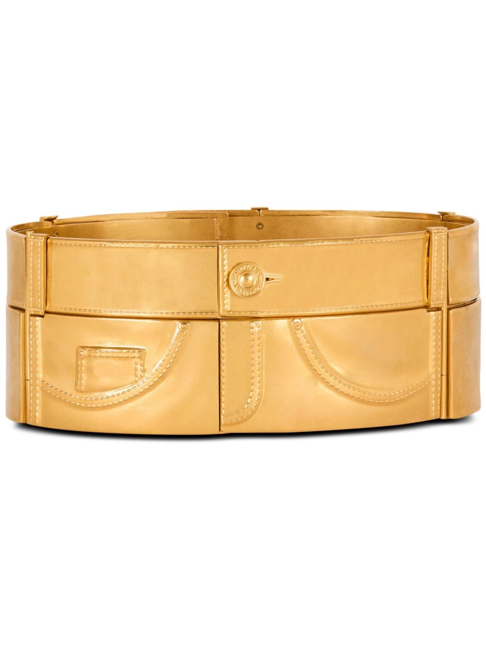 jeans-effect belt Highlights - Gold-tone - Brass - Polished finish - Jeans-effect - Engraved logo - Hinged opening - Adjustable fit Made in Italy Composition Brass 100% SIZE & FIT Measurement WIDTH 3.93 in(10 cm)
