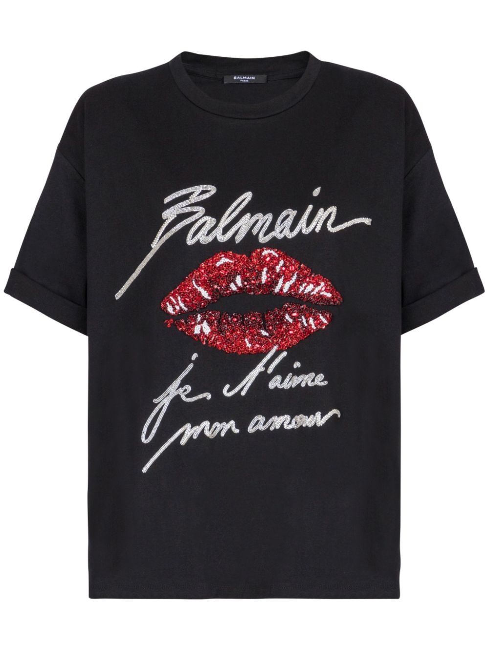 kiss-print short-sleeves T-shirt Highlights - Black - Cotton - Jersey texture - Kiss print - Crew neck - Short sleeves - Sequin embellishment - Logo print at the chest - Slogan print - Straight hem Made in Italy Composition Cotton 100%