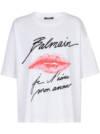 kiss-print T-shirt Highlights - White/black - Cotton - Kiss print - Script print - Logo patch to the rear - Round neck - Short sleeves - Drop shoulder - Straight hem Imported Composition Cotton 100%