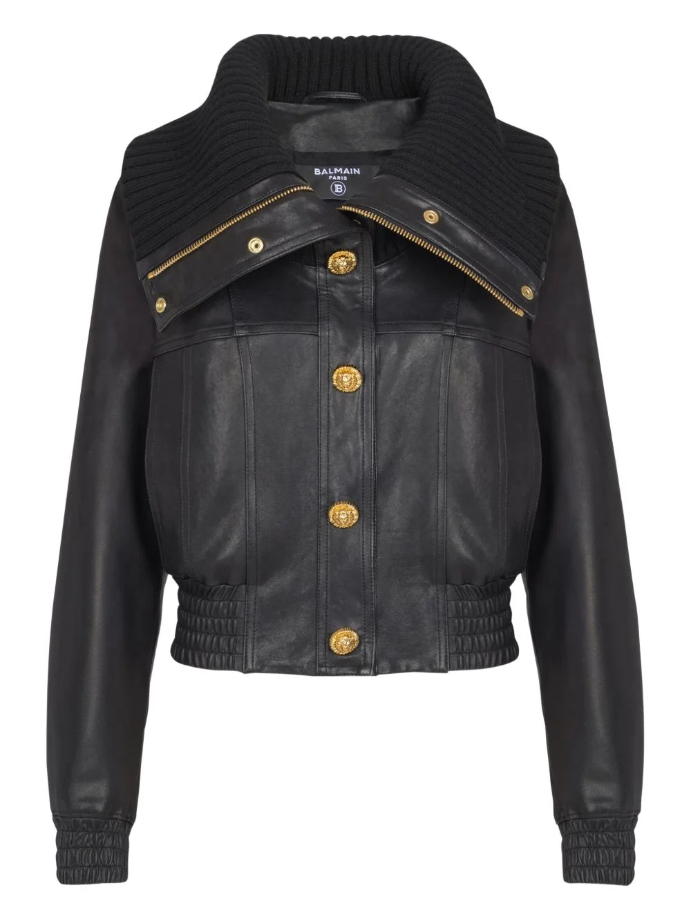 knit-collar button jacket Highlights - Black - Knit collar - Gold-tone hardware - Front button fastening - Front zip fastening - Elasticated hem Imported Composition Lambskin 100% Washing instructions Read Manufacturer Guidelines