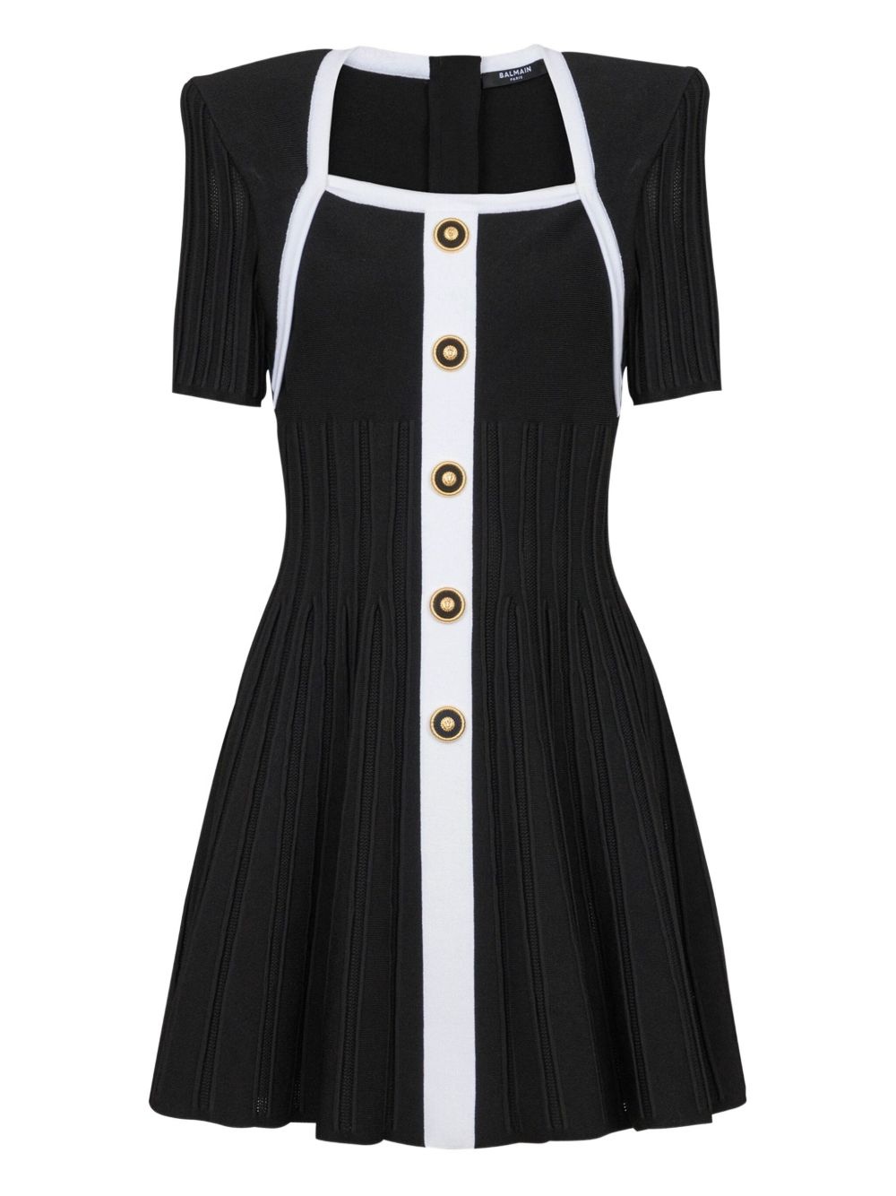 knitted mini dres Highlights - Black - Concealed rear zip fastening - Decorative button detailing - Two-tone design - Shoulder pads Made in Italy Composition Viscose 88%, Polyester 12%