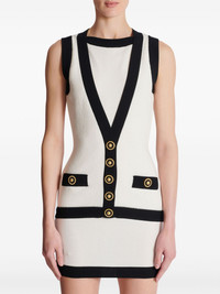 knitted mini dress Highlights - White/black - Knitted construction - Embossed gold-tone buttons - Decorative button detailing - Crew neck - Sleeveless - Rear zip fastening - Straight hem - Thigh-length Made in Italy Composition Viscose 85%, Polyester 15%