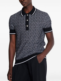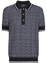 Labyrinth knitted polo shirt Highlights - Black - Merino wool blend - Knitted construction - Front button placket - Short sleeves - Patterned jacquard - Straight hem Made in France Composition Merino 66%, Linen/Flax 32%, Polyamide 2%