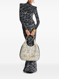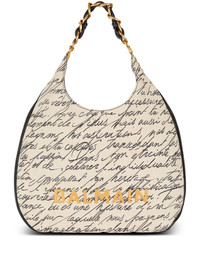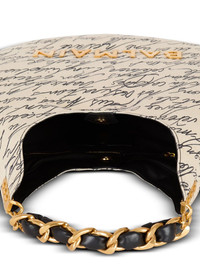 large 1945 Soft Hobo shoulder bag Highlights - White/black - Canvas - Gold-tone logo lettering - Slogan print - Leather and chain-link shoulder strap - Concealed magnetic fastening - Main compartment Made in Italy Composition Outer: Cotton 58%, Linen/Flax 42%