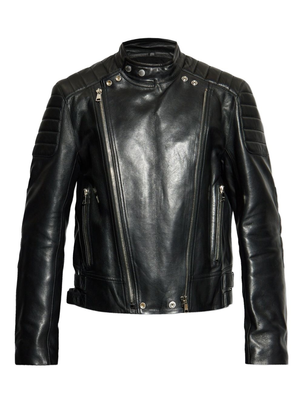 leather jacket Highlights - Black - Asymmetric zip fastening - Padded shoulder detailing - Zip pockets - Press-stud collar Imported Composition Outer: Lamb Skin 100% Lining: Cupro 100% Washing instructions Read Manufacturer Guidelines