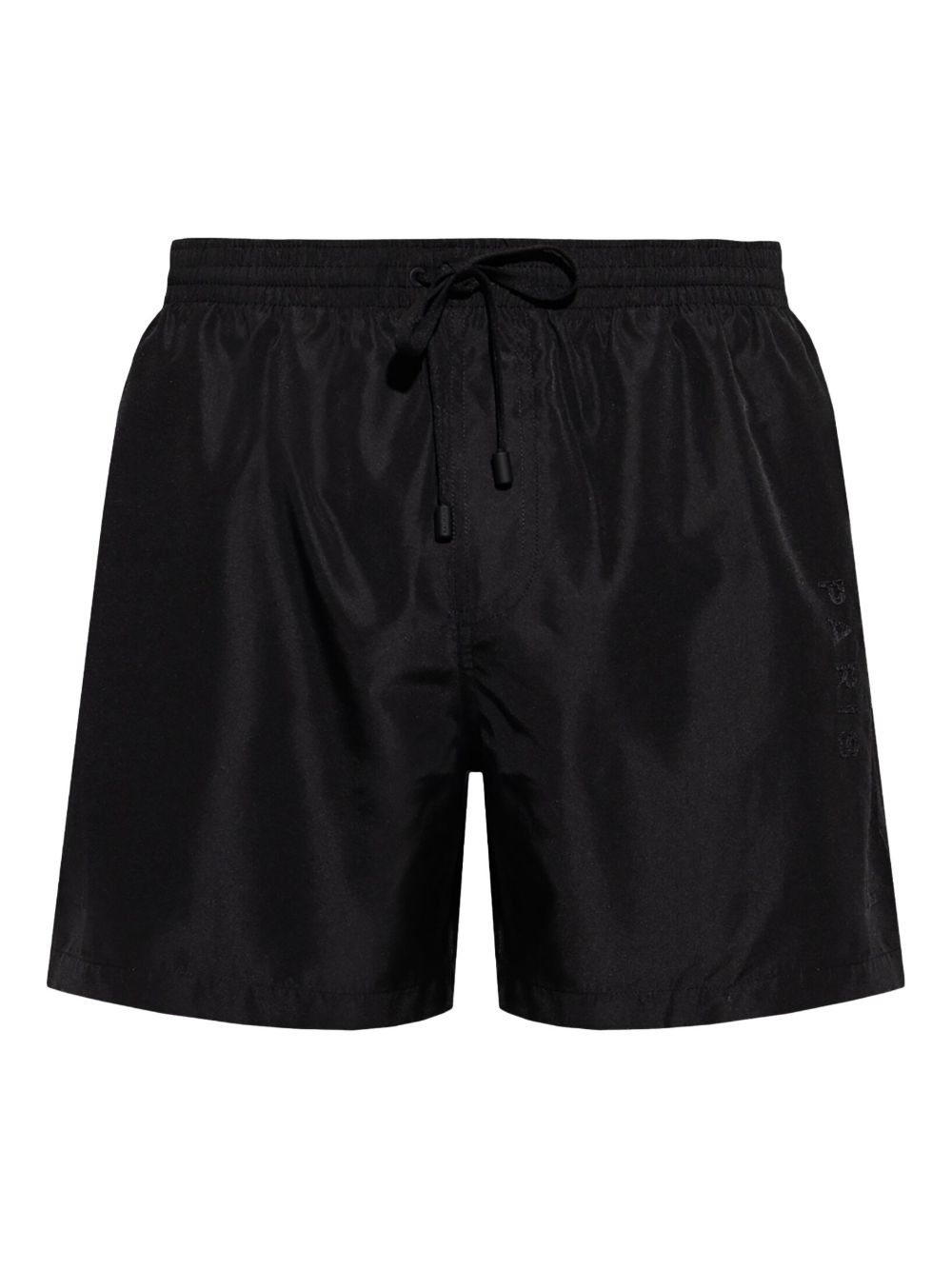 logo-applique swim shorts Highlights - Black - Elasticated drawstring waistband - Two side slit pockets - Mid-rise - Be mindful to try on swimwear over your own garments. Made in Italy Composition Polyester 100%
