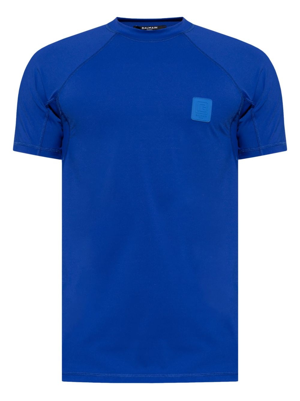 logo-applique swimming T-shirt Highlights - Cobalt blue - Crew neck - Short raglan sleeves - Straight hem Made in Italy Composition Polyamide 80%, Elastane 20%