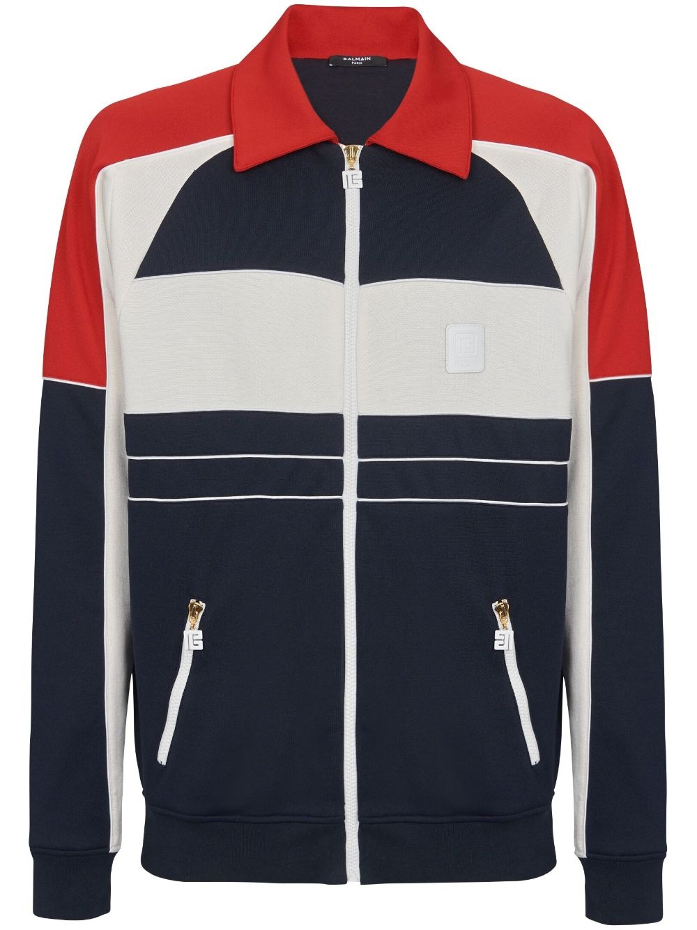 logo-badge track jacket Highlights - Navy blue - Red - White - Recycled polyester - Organic cotton blend - Colour-block design - Logo patch at the chest - Straight-point collar - Front zip fastening - Long sleeves - Two side zip-fastening pockets - Ribbed cuffs and hem Made in Italy Composition Recycled Polyester 55%, Organic Cotton 45%
