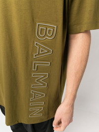 logo-detail T-shirt A love for logomania is apparent in the latest collection from Balmain. This T-shirt formed part of the lineup and comes decorated with a contrasting logo across the chest. Highlights - Green - Organic cotton - Logo print at the chest - Ribbed cuffs - Round neck - Short sleeves - Straight hem Imported Composition Organic Cotton 100% SIZE & FIT Model measurements Height 6 ft 1 in(1.85 m) Bust/Chest 35.82 in(91 cm) Hips 37.79 in(96 cm) Waist 29.13 in(74 cm) Measurement CHEST 45.66 in(116 cm) SLEEVE LENGTH 9.05 in(23 cm) FittingInformation This piece fits true to size. We recommend you get your regular size Cut for a loose fit Made with a mid-weight fabric