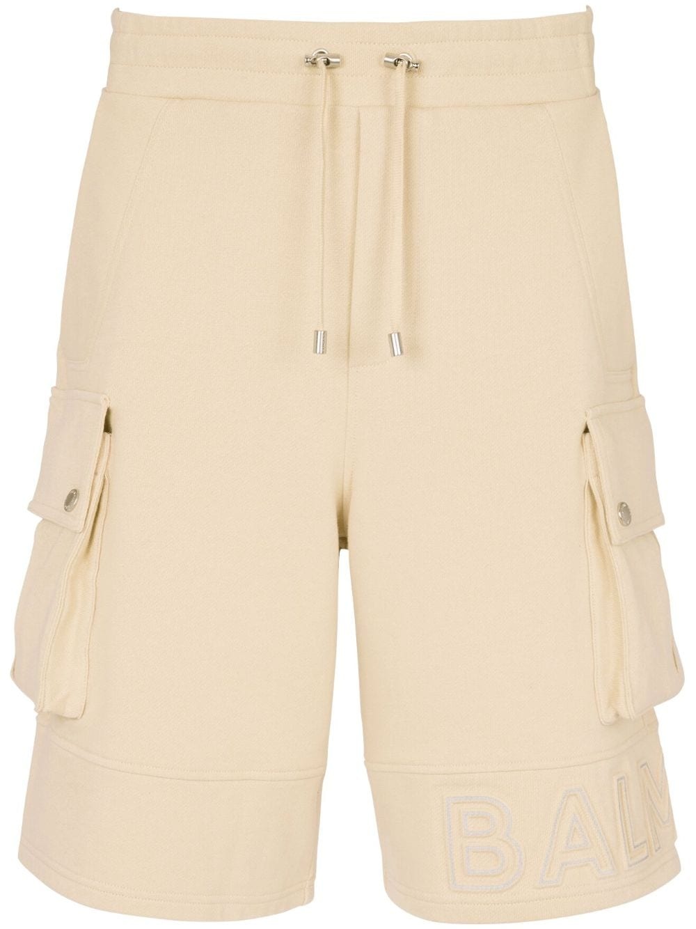 logo-embossed cargo shorts Highlights - Beige - Cotton - Embossed logo to the side - Mid-rise - Elasticated drawstring waistband - Two side cargo pockets - Slip pockets to the sides - Rear flap pocket Imported Composition Cotton 100% Washing instructions Specialist Cleaning