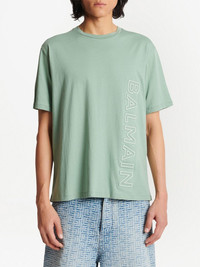 logo-embossed cotton T-shirt Balmain continues to find new ways of adapting its branding, elevating everyday pieces. This cotton crew-neck T-shirt boasts the brand's lettering embossed down the side. Highlights - Sage green - Cotton - Crew neck - Short sleeves - Straight hem - Embossed logo to the side Imported Composition Cotton 100% Washing instructions Specialist Cleaning