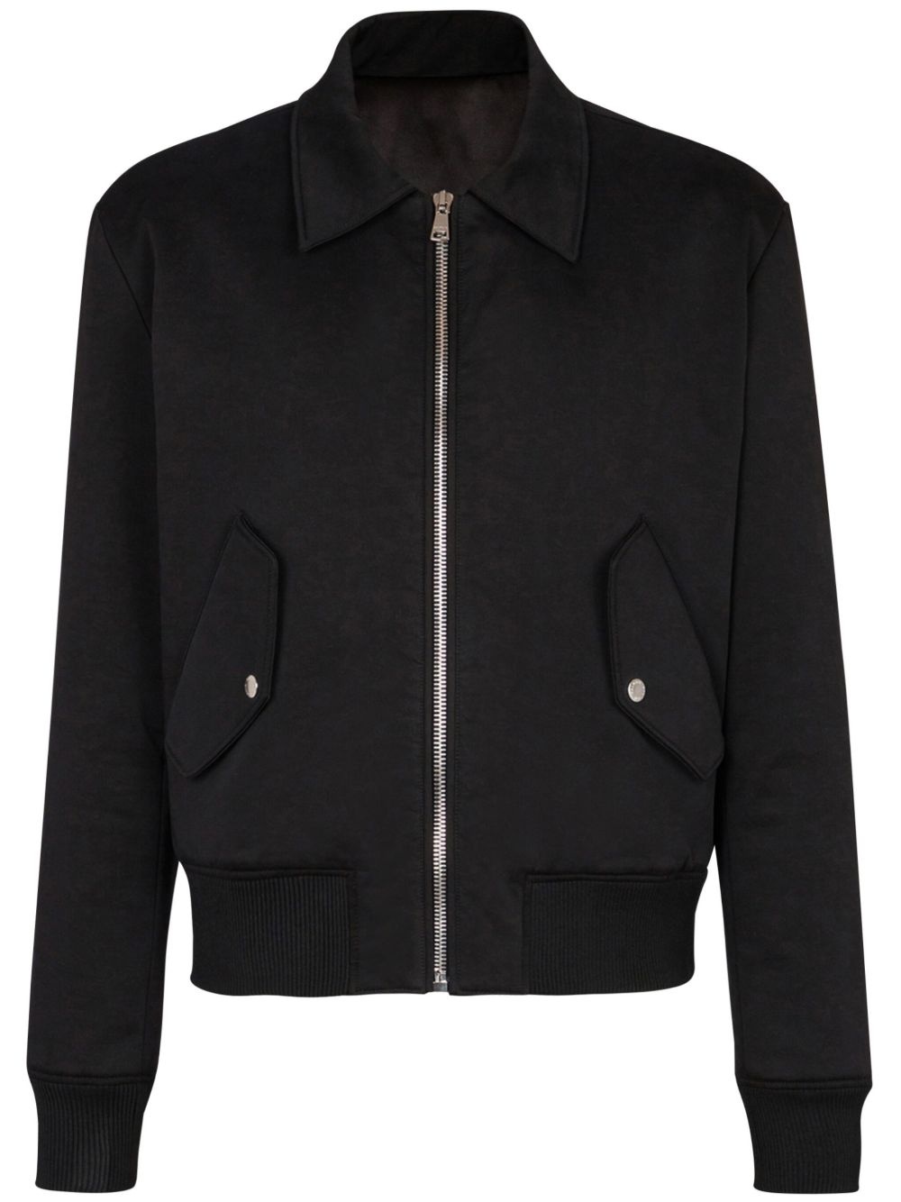 logo-embroidered bomber jacket Highlights - Black - Stretch-cotton - Embroidered logo to the rear - Front zip fastening - Pointed flat collar - Long sleeves - Two press-stud fastening side pockets - Ribbed cuffs and hem Imported Composition Cotton 96%, Elastane 4%