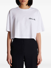 logo-embroidered cotton T-shirt Highlights - White - Cotton - Embroidered logo at the chest - Crew neck - Short sleeves - Cropped - Straight hem Imported Composition Cotton 100%