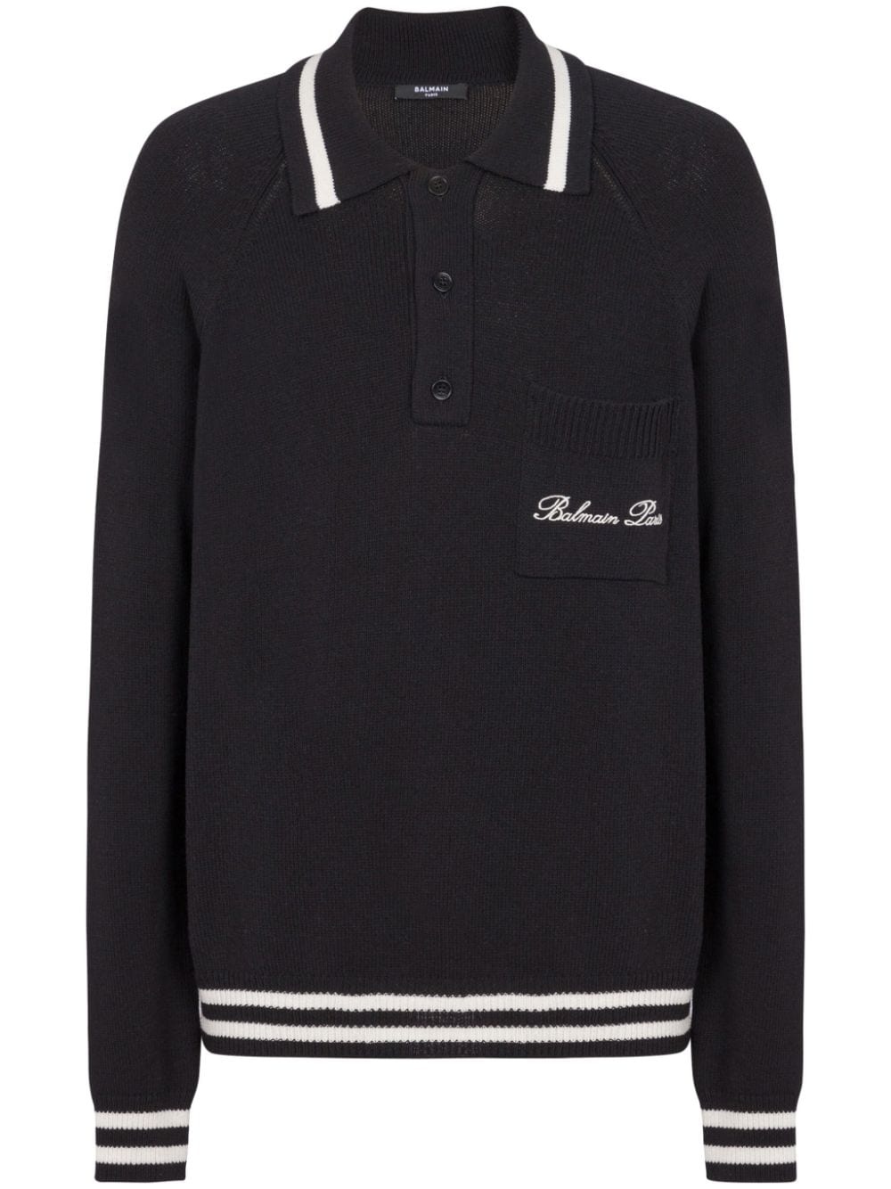 logo-embroidered long-sleeved polo shirt Highlights - Black - Embroidered logo at the chest - Striped border - Logo-engraved buttons - Polo collar - Front button placket - Chest patch pocket - Long sleeves - Ribbed cuffs and hem Made in France Composition Cotton 43%, Lyocell 43%, Polyamide 14% Washing instructions Specialist Cleaning