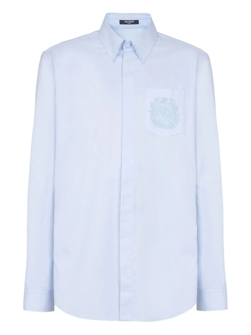 logo-embroidered shirt Highlights - Blue - Concealed front button fastening - Embroidered logo at the chest - Long sleeves Made in Italy Composition Cotton 100% Washing instructions Read Manufacturer Guidelines