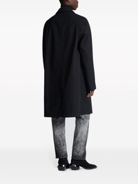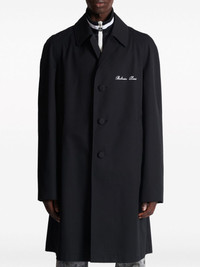 logo-embroidered single-breasted coat Highlights - Black - Embroidered logo at the chest - Front button fastening - Spread collar - Long sleeves - Two side inset pockets - Straight hem - Waterproof Made in Italy Composition Polyester 59%, Cotton 28%, Polyurethane 13% Washing instructions Read Manufacturer Guidelines
