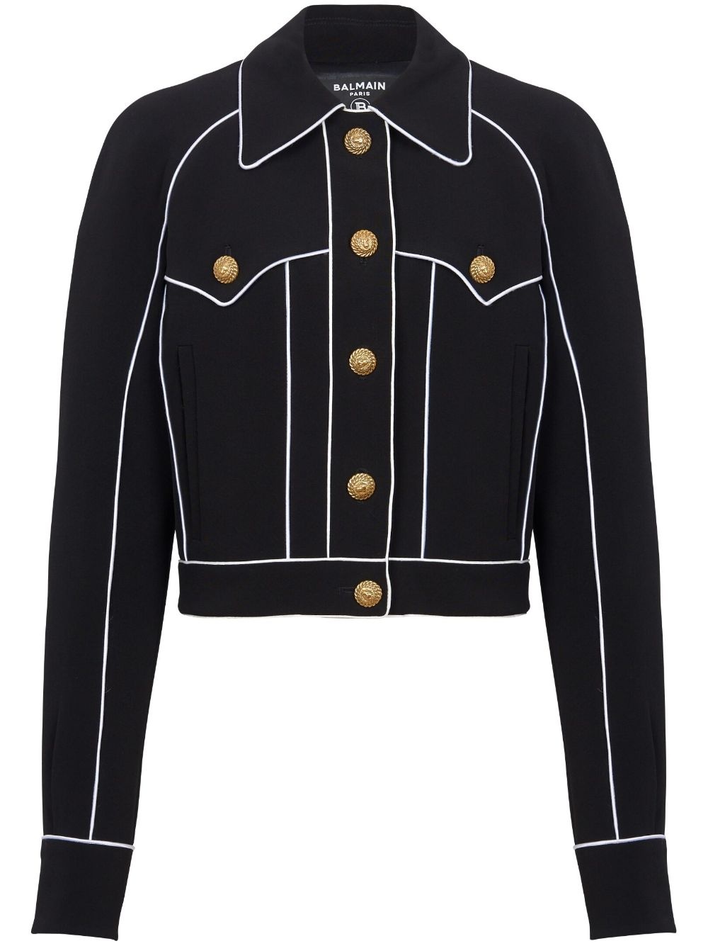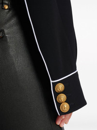 Western crepe jacket Highlights - Black - Embroidered logo to the rear - Cut-out detailing - Front button fastening - Spread collar - Embossed gold-tone buttons - Long sleeves - Buttoned cuffs - Chest flap pockets - Straight hem Imported Composition Viscose 100% SIZE & FIT Measurement SLEEVE LENGTH 25 in(63.5 cm) LENGTH 20 in(50.8 cm) WAIST 34.01 in(86.4 cm) BUST 40 in(101.6 cm)