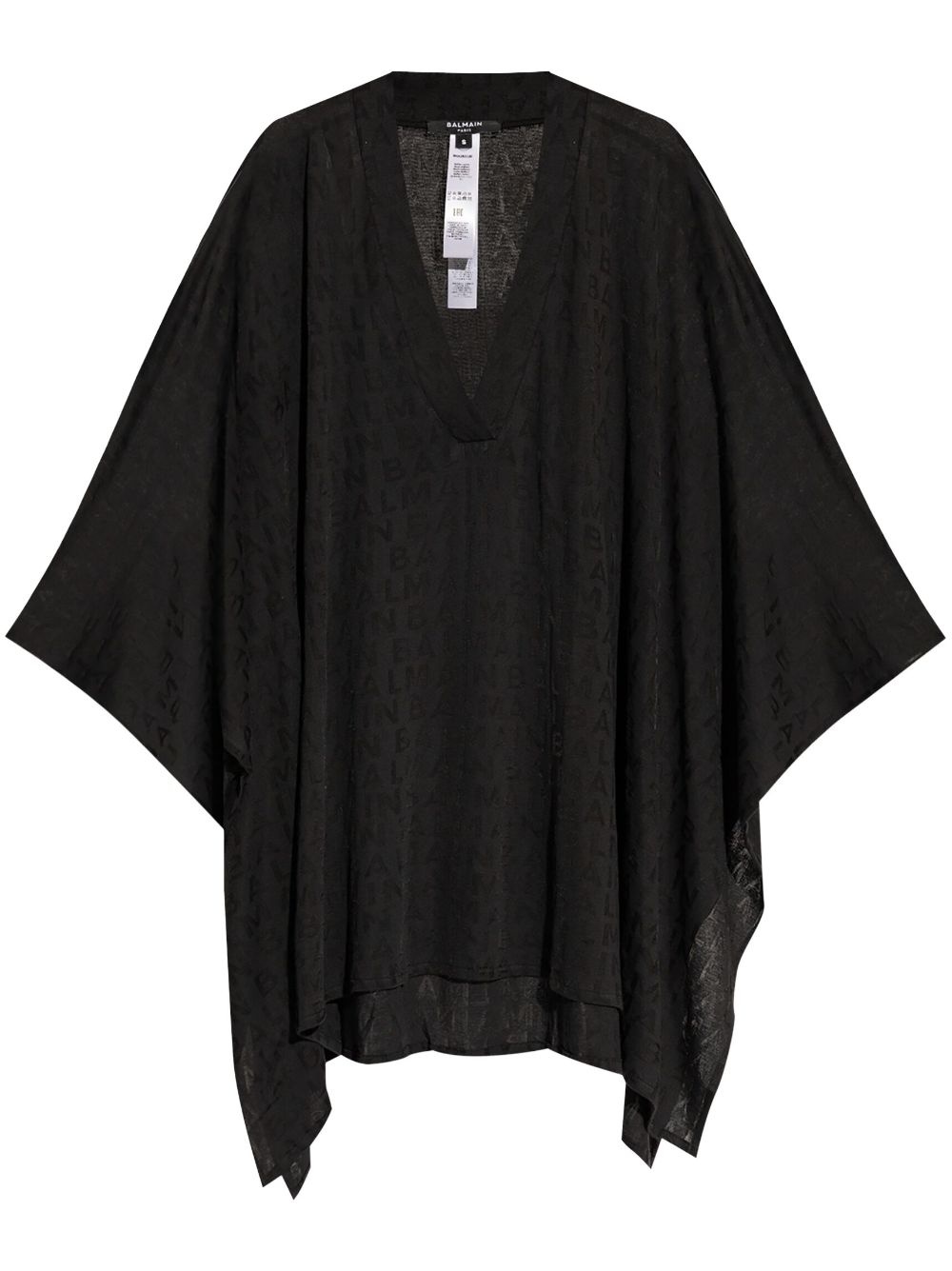 logo-jacquard beach minidress Highlights - Black - Cotton blend - Semi-sheer construction - Jacquard logo motif - Plunging v-neck - Batwing sleeves - Asymmetric hem - Thigh-length - Unlined Made in Italy Composition Cotton 56%, Viscose 44% Washing instructions Read Manufacturer Guidelines