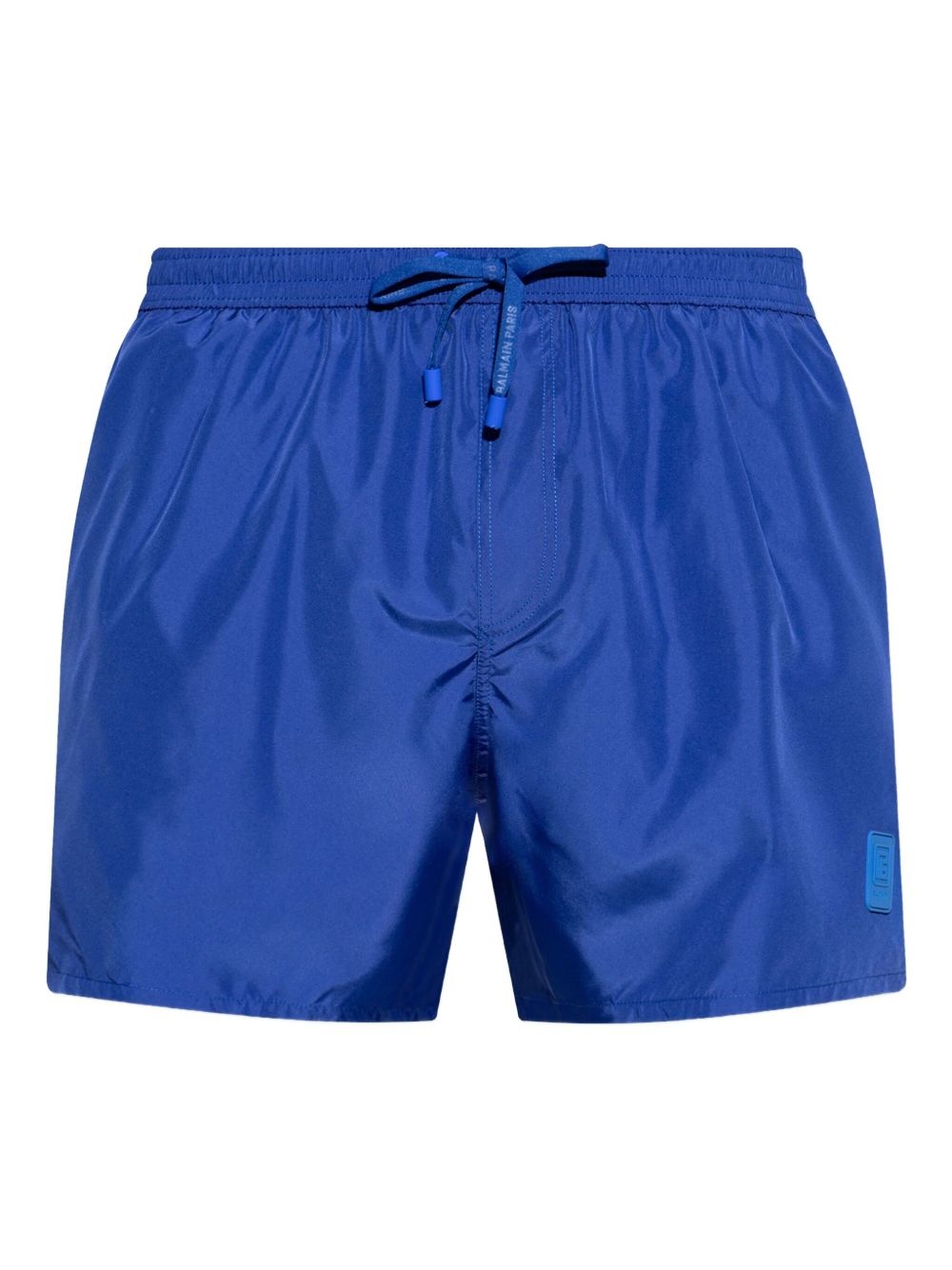 logo-patch swim shorts Highlights - Royal blue - Elasticated drawstring waistband - Two side slit pockets - Be mindful to try on swimwear over your own garments. Made in Italy Composition Polyester 100%