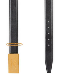 logo-plaque leather belt Highlights - Black - Calf leather - Grained texture - Gold-tone logo plaque - Pin fastening - Safety pin detail - Perforated - Adjustable fit Made in Italy Composition CALFSKIN 100%