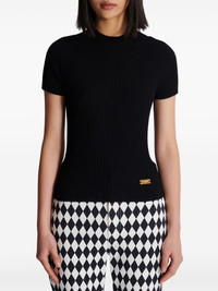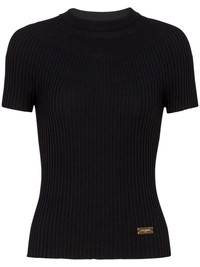 logo-plaque ribbed knit top Highlights - Black - Virgin wool - Ribbed knit - Gold-tone logo plaque - Crew neck - Short sleeves - Straight hem Made in Italy Composition Virgin Wool 100%