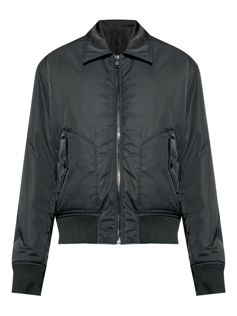 logo-print bomber jacket Highlights - Black - Ribbed cuffs - Two side flap pockets - Spread collar - Front zip fastening - Elasticated hem Made in Italy Composition Polyester 100% Washing instructions Read Manufacturer Guidelines