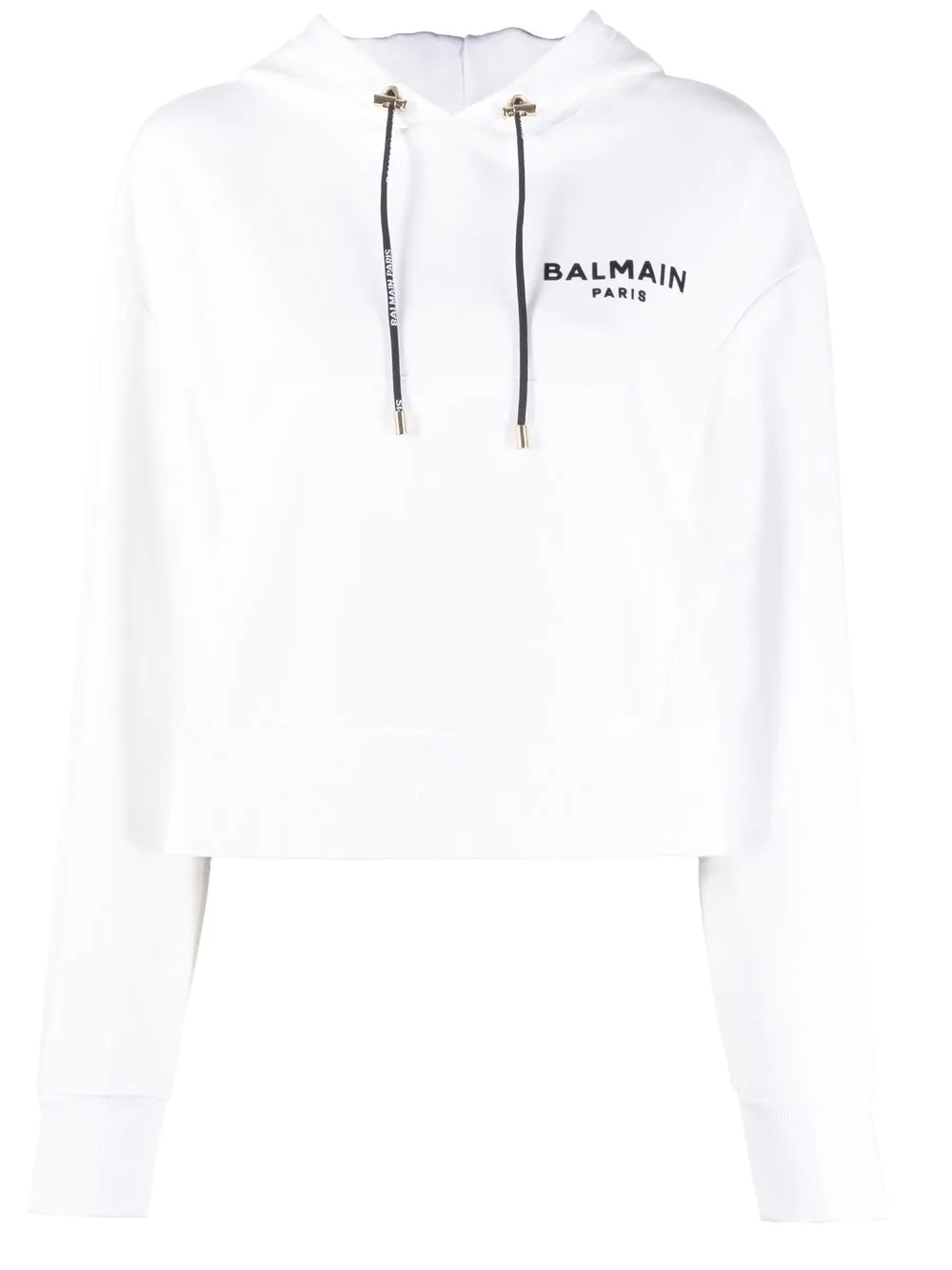 logo-print cropped hoodie white cotton drawstring hood front pouch pocket ribbed-knit edge drop shoulder long sleeves Imported Composition Cotton 100% SIZE & FIT Model measurements Height 5 ft 10 in(1.77 m) Bust/Chest 32.28 in(82 cm) Hips 35.03 in(89 cm) Waist 25.19 in(64 cm) Measurement SLEEVE LENGTH 22.44 in(57 cm) LENGTH 19.29 in(49 cm) BUST 42.51 in(108 cm) Shoulder Width 22.44 in(57 cm) FittingInformation Designed for a relaxed fit, this piece allows for comfort and movement when worn Made from a midweight non-stretch fabric, this piece offers minimal elasticity when worn This piece fits true to size – take your usual size Washing instructions Machine Wash
