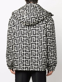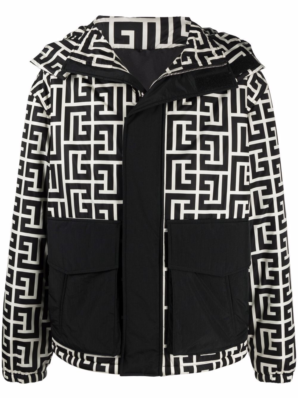 logo-print padded jacket black padded design all-over graphic print classic hood concealed front zip fastening long sleeves elasticated cuffs Made in Italy Composition Lining: Polyester 100% Outer: Polyamide 100% SIZE & FIT Model measurements Height 6 ft 2 in(1.89 m) Bust/Chest 37.79 in(96 cm) Hips 37 in(94 cm) Waist 29.92 in(76 cm) FittingInformation This piece fits true to size. We recommend you get your regular size Cut for a loose fit Made with a mid-weight non-stretch fabric Washing instructions Dry Clean Only
