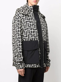 Hooded nylon jacket with maxi Balmain monogram