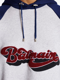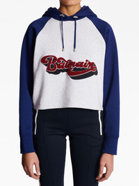 logo-print raglan-sleeve hoodie red/white/blue cotton logo print to the front long raglan sleeves drawstring hood cropped Imported Composition Body: Cotton 100%