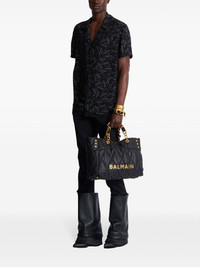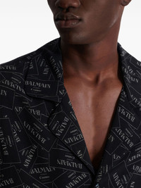 logo-print shirt Highlights - Black - Poplin texture - Front button fastening - Notched collar - Short sleeves - All-over logo print - Curved hem Imported Composition Viscose 100%