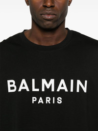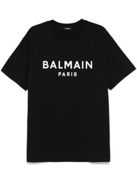 Black eco-designed cotton T-shirt with silver Balmain Paris logo print
