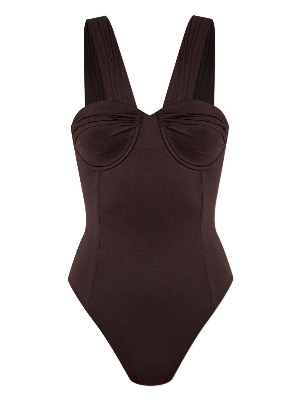 logo swimsuit Highlights - Brown - Wide shoulder straps - Logo patch to the rear - Be mindful to try on swimwear over your own garments. Made in Italy Composition Polyamide 82%, Spandex/Elastane 18%