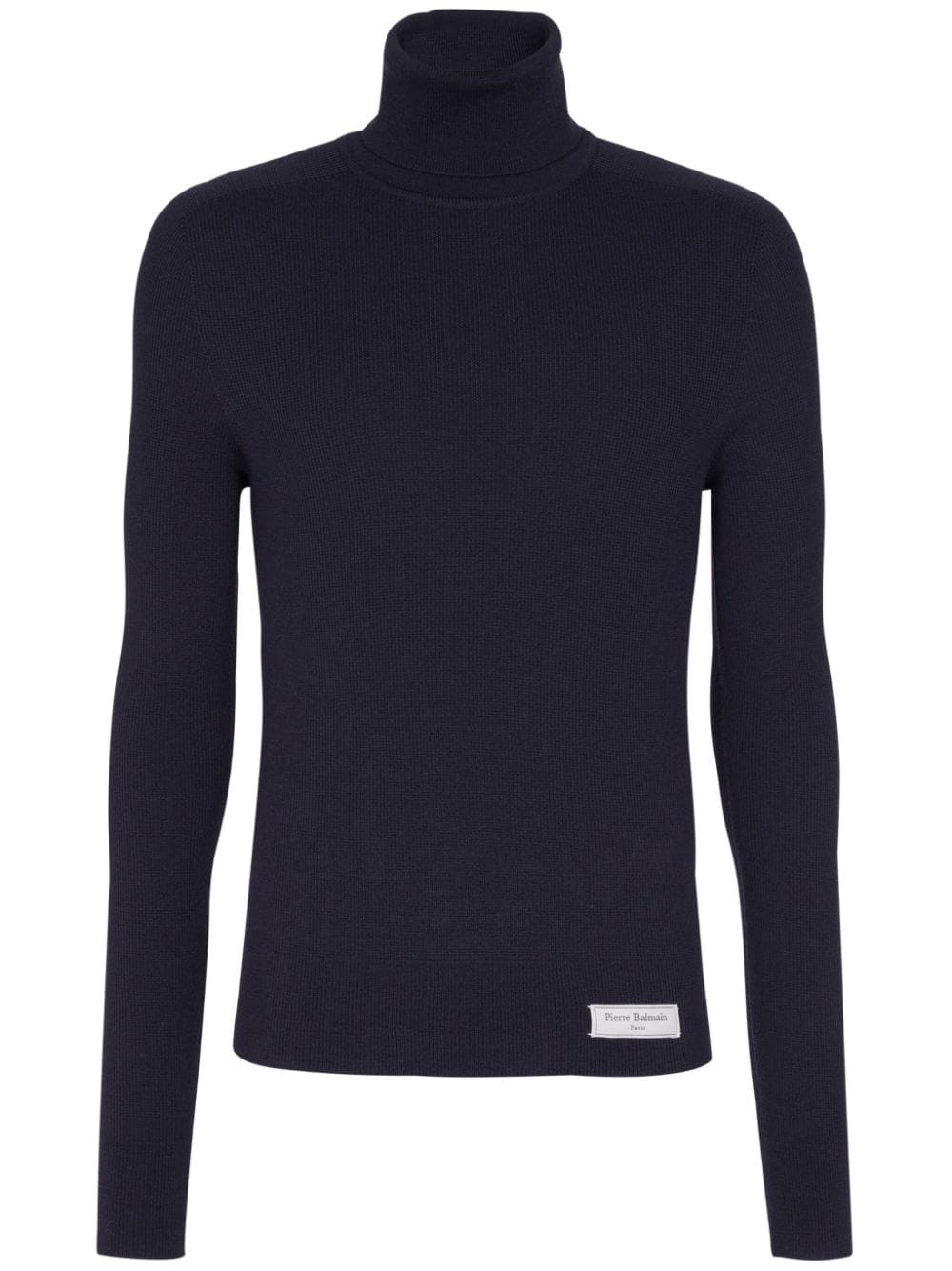 logo-tag merino-wool jumper Highlights - Navy blue - Merino wool - Knitted construction - Roll neck - Long sleeves - Logo tag to the hem - Ribbed cuffs and hem - Jacquard logo motif to the rear Made in Italy Composition Merino 100%