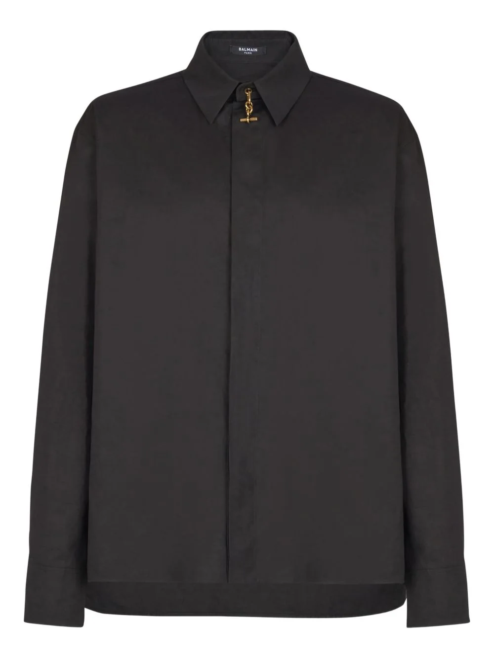 long-sleeve concealed-fastening shirt Highlights - Black - Gold-tone hardware - Asymmetric front - Long sleeves Made in Italy Composition Cotton 100% Washing instructions Read Manufacturer Guidelines