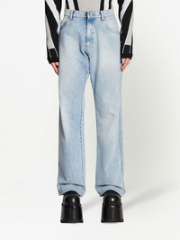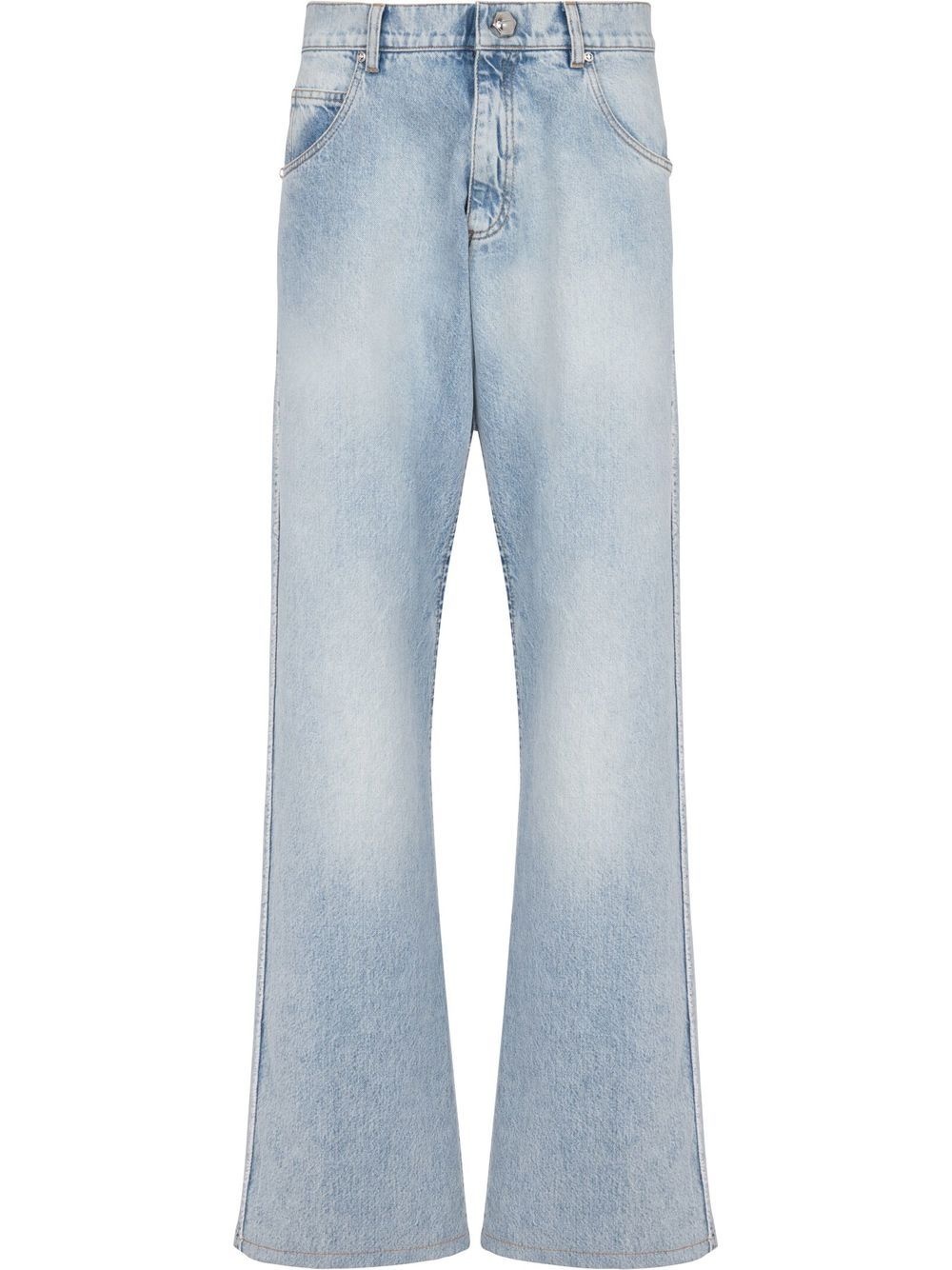 loose-fit straight-leg jeans loose-fit straight-leg jeans from Balmain featuring blue, cotton, faded effect, logo patch to the rear, high-waisted, belt loops, front button and zip fastening, classic five pockets and straight leg. Imported Composition Cotton 100%