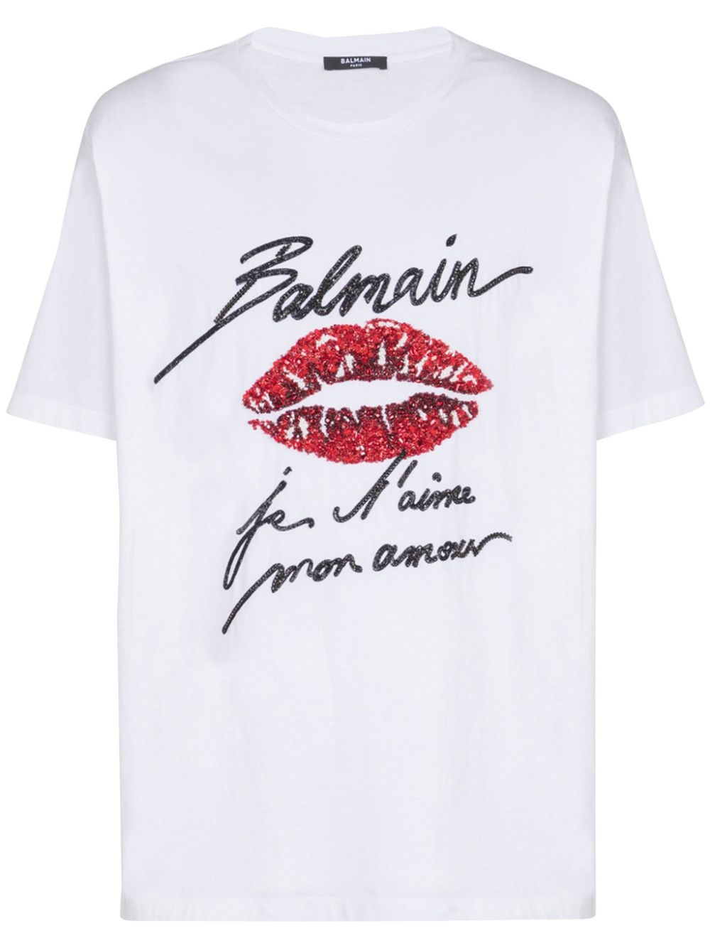 Embroidered T-shirt with Balmain "Love Letter" and Lips