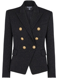 lurex-detail double-breasted blazer Highlights - Black - Virgin wool blend - Lurex detailing - Embossed gold-tone buttons - Peak lapels - Two front flap pockets - Long sleeves - Straight hem Imported Composition Body: Virgin Wool 98%, Polyester 1%, Polyamide 1% SIZE & FIT Measurement SLEEVE LENGTH 18.5 in(47 cm) LENGTH 23.62 in(60 cm) WAIST 31.49 in(80 cm) BUST 35.43 in(90 cm)
