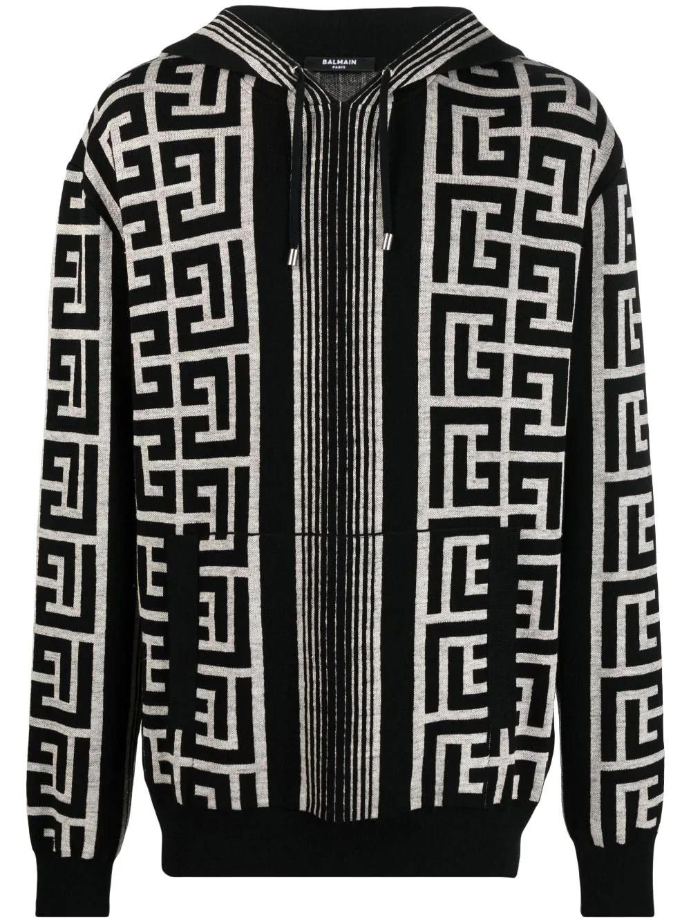 maxi monogram hoodie black/white wool-linen blend monogram pattern drawstring hood long sleeves front pouch pocket ribbed edge Made in France Composition Fabric 100% SIZE & FIT Model measurements Height 6 ft 2 in(1.88 m) Bust/Chest 37.79 in(96 cm) Hips 35.43 in(90 cm) Waist 28.74 in(73 cm) Washing instructions Dry Clean Only