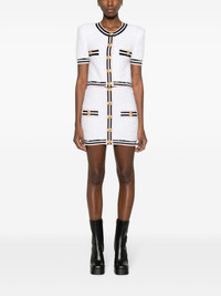 Maze monogram-jacquard miniskirt Part of the SS24 collection, this boucle miniskirt by Balmain reflects the brand's love for vintage aesthetics. Featuring a maze monogram pattern, the white design is punctuated with contrasting striped trims and embossed gold-tone buttons that reinforce the label's emblematic style. Highlights - White/black/pink - Monogram jacquard - Metallic threading - Boucle construction - Stripe detailing - Frayed detailing - Logo-embossed buttons - High-waisted - Elasticated waistband - Exposed rear zip fastening - Two front button-fastening patch pockets - Elasticated hem - Above-knee length - Full lining Made in France Composition Viscose 83%, Polyester 17% SIZE & FIT Model measurements Height 5 ft 10 in(1.78 m) Bust/Chest 31.49 in(80 cm) Hips 37 in(94 cm) Waist 23.62 in(60 cm) FittingInformation Made with a midweight knit, this piece offers some stretch